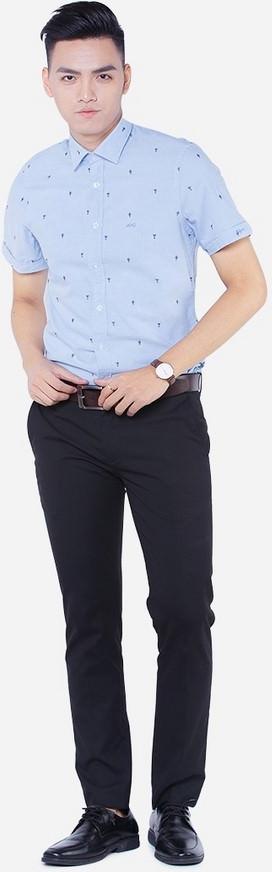 Áo SƠ MI NAM CỘC TAY HỌA TIẾT XANH ALIGRO ALGS-C88