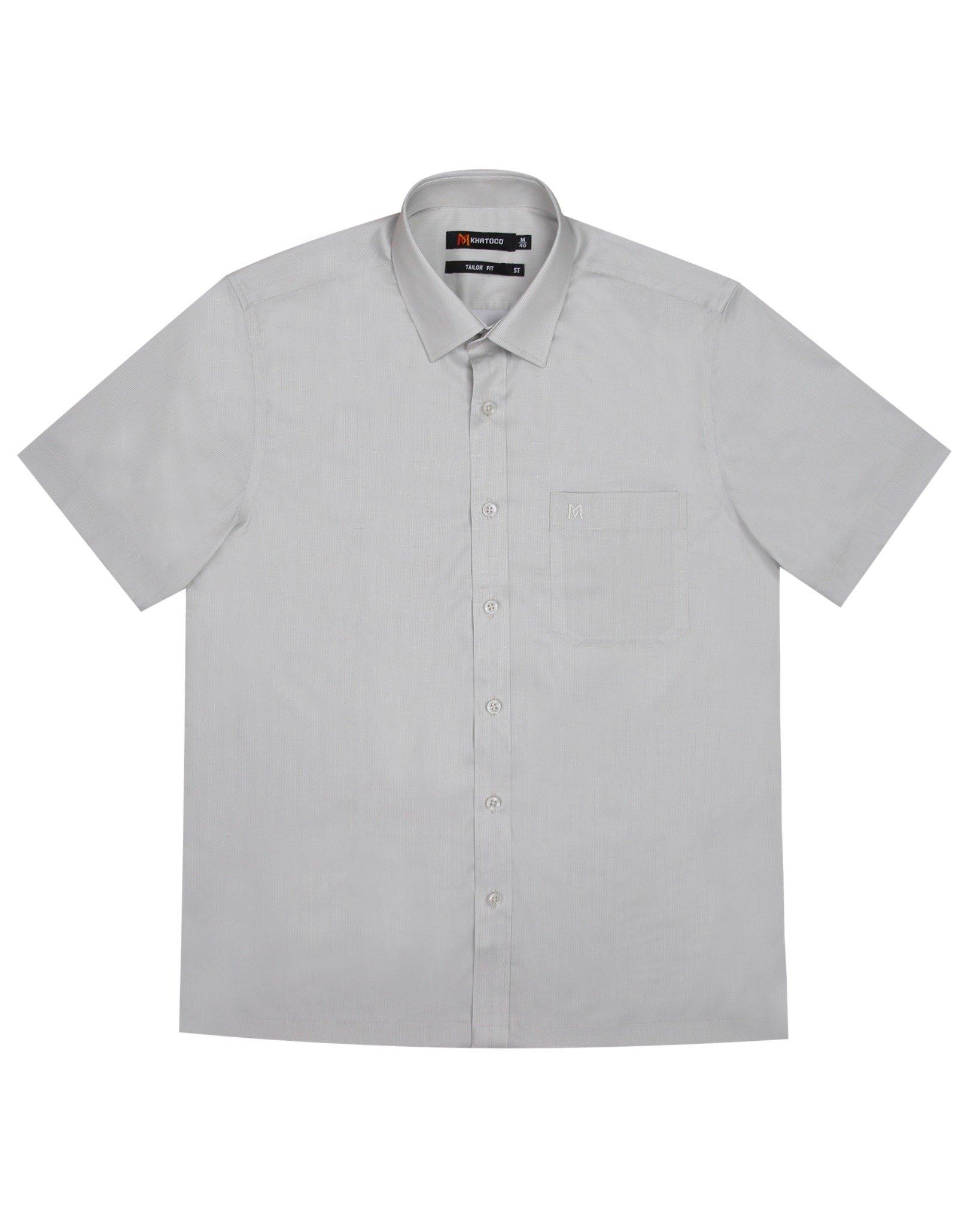 Áo sơ mi nam tay ngắn lai ngang – Khatoco - Mã hàng: A1MN498T2 - Chất liệu: - 77% Polyester (Microfiber) - 19% Viscose (Modal) - 4% Spandex → Vải cao cấp, mềm mại, thấm