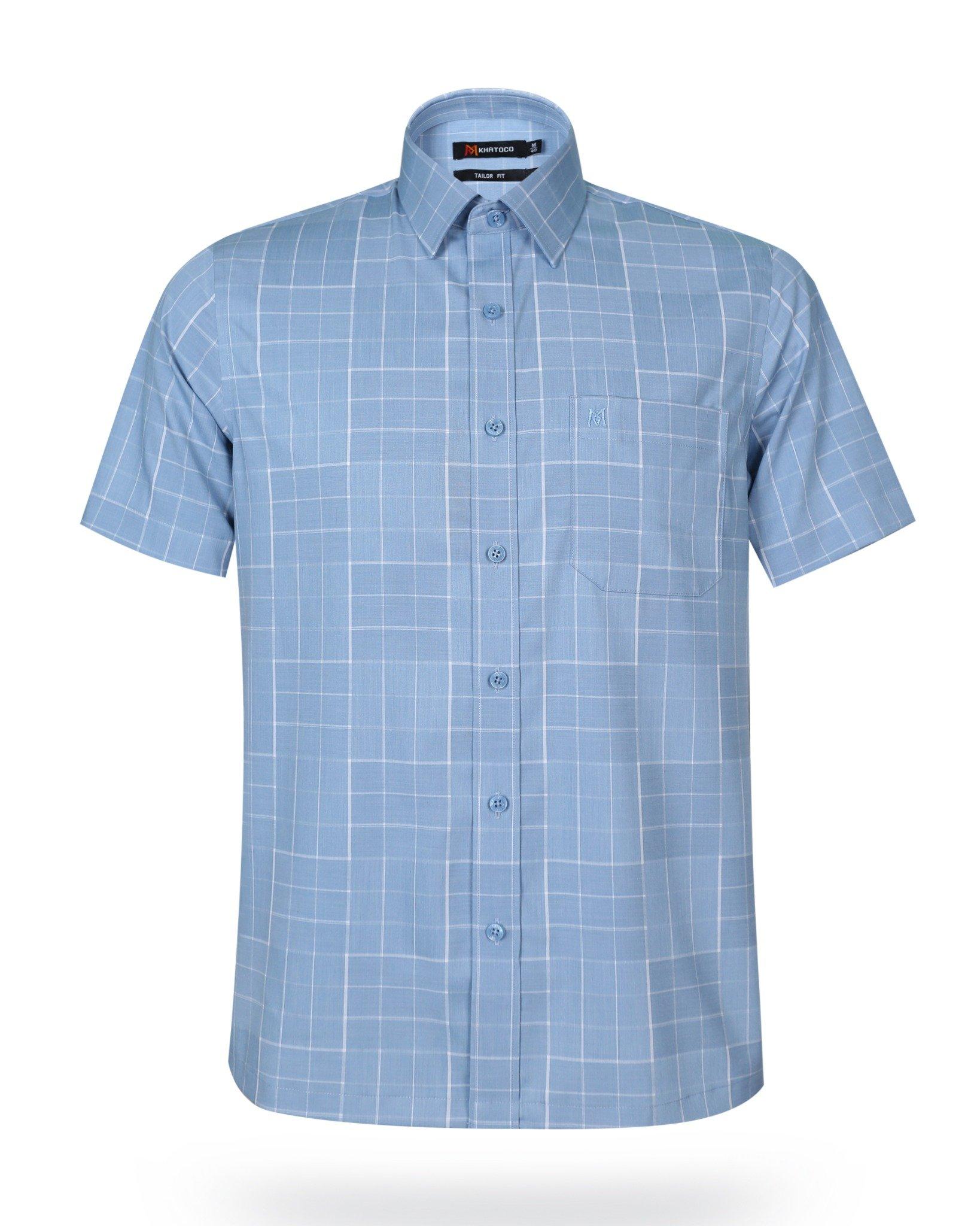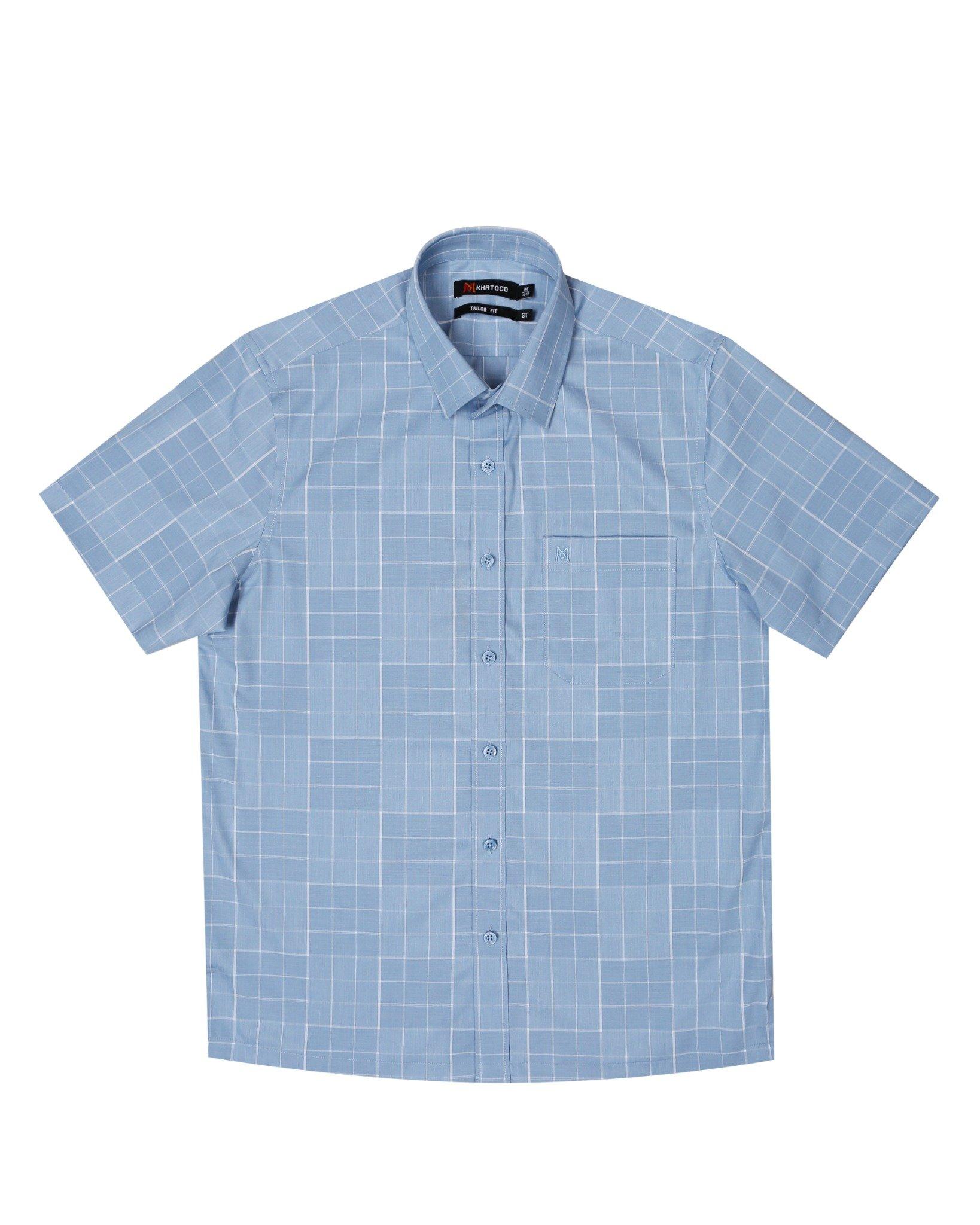 Áo sơ mi nam tay ngắn lai ngang – Khatoco - Mã hàng: A1MN538T2 - Chất liệu: 75% Polyester + 22% Viscose (Bamboo) + 3% Spandex → Vải mềm mại, thoáng mát, co giãn nhẹ,