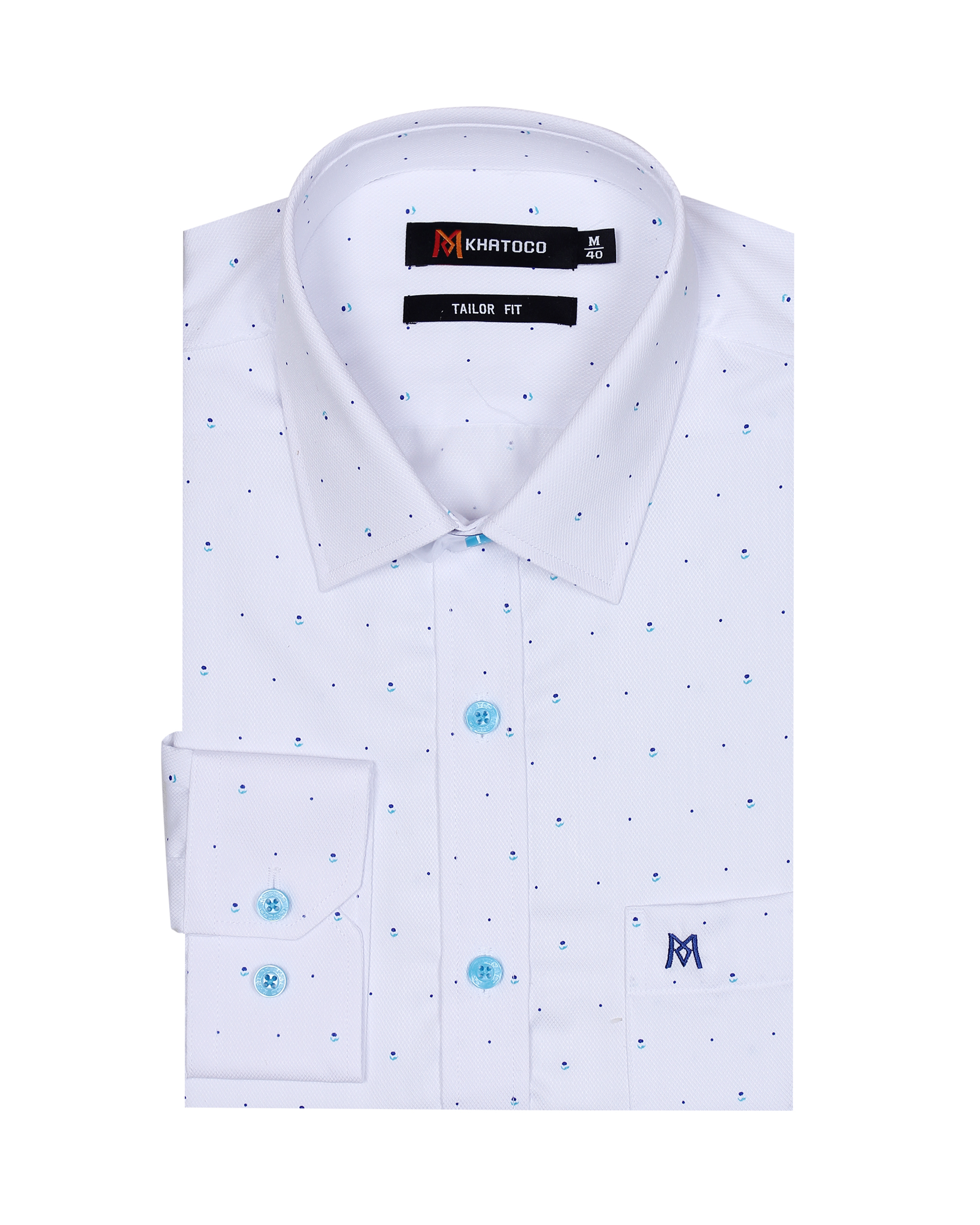 Áo sơ mi nam trung niên, Áo sơ mi nam công sở Anton, Áo sơ mi trắng dài tay trắng họa tiết chấm bi Y302 Vải cotton thoáng mát, thấm hút tốt, mềm mịn không