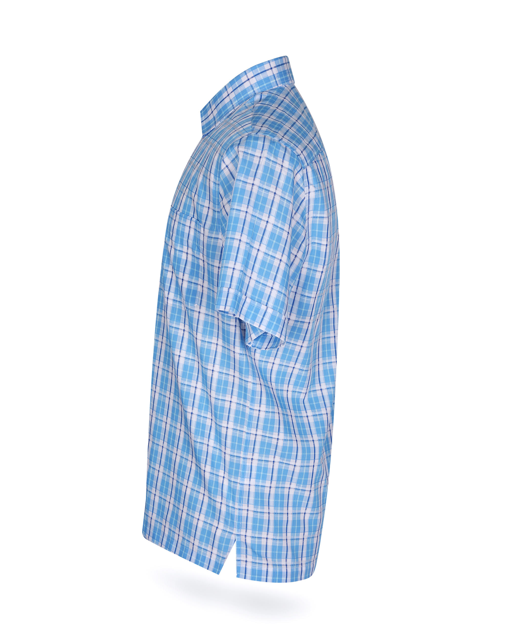 Áo sơ mi nam tay ngắn lai ngang – Khatoco - Mã hàng: A1MN538T2 - Chất liệu: 75% Polyester + 22% Viscose (Bamboo) + 3% Spandex → Vải mềm mại, thoáng mát, co giãn nhẹ,