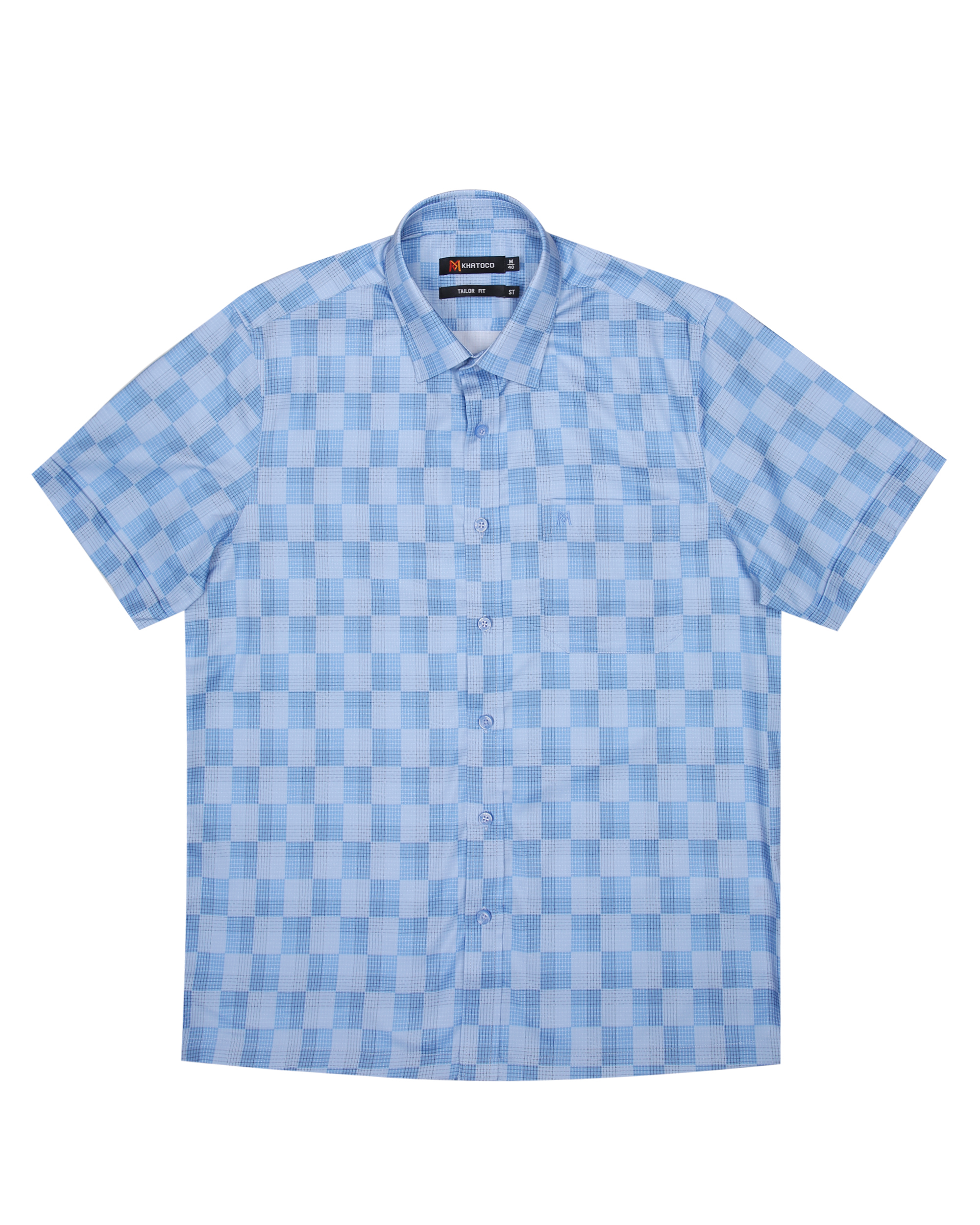 Áo sơ mi nam tay ngắn lai ngang – Khatoco - Mã hàng: A1MN538T2 - Chất liệu: 75% Polyester + 22% Viscose (Bamboo) + 3% Spandex → Vải mềm mại, thoáng mát, co giãn nhẹ,
