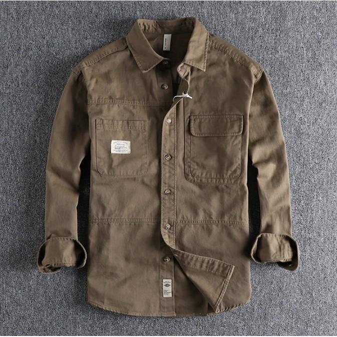 Áo sơ mi túi hộp phong cách Retro lính_dã ngoại Áo sơ mi Wild Casual Màu đang hot lắm ạ Chất kaki được wash acid cực bụi , phom chuẩn mặc rất đẹp ạ Size:
