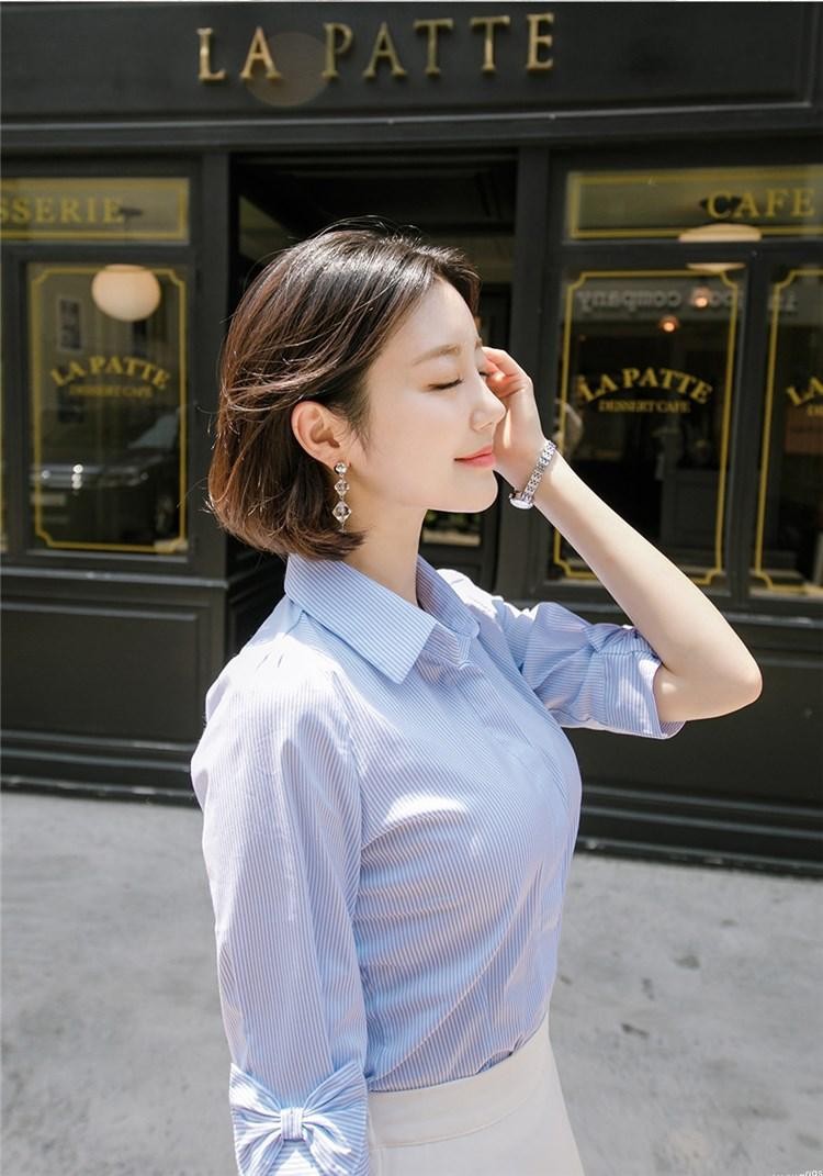--------------- CHI TIẾT SẢN PHẨM ✿ Sản phẩm : Áo sơ mi mùa hè kiểu dáng thanh lịch, trẻ trung Asley Miều Est.2013 ✿ Chất liệu : Cotton ✿ Màu sắc : SỌC XANH ✿