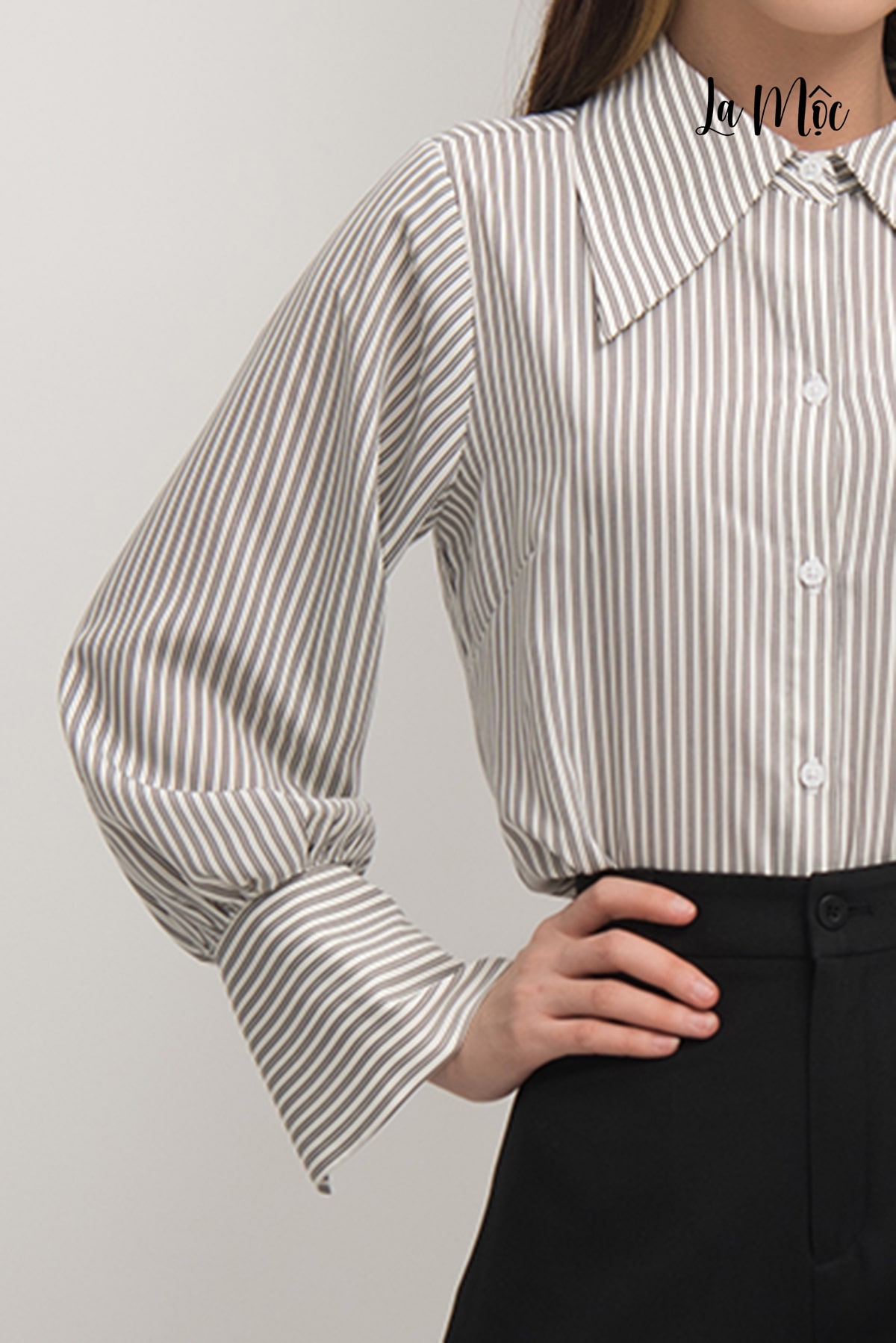 Áo sơ mi sọc tay xẻ La Mộc chất liệu lụa Korea là mẫu thiết kế dành riêng cho những cô nàng ưa thích sự sành điệu.