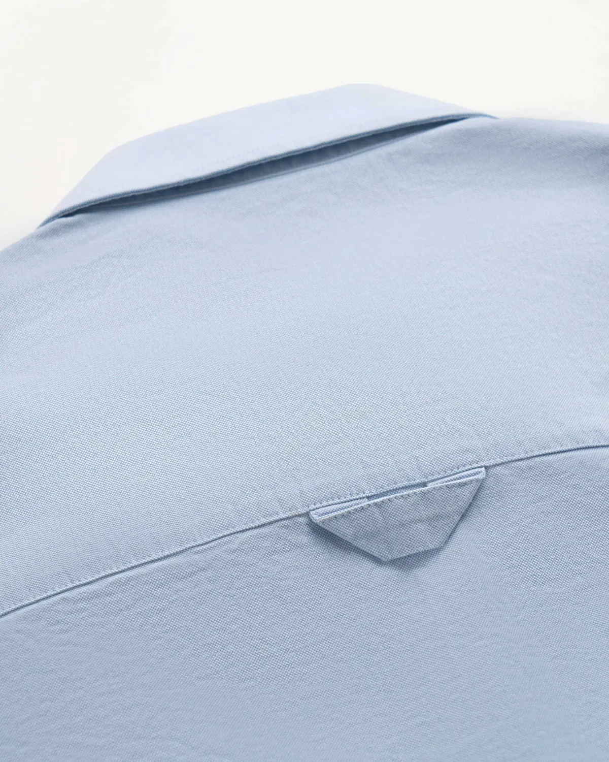 - Chất liệu Oxford: Oxford là loại vải được kết hợp giữa sợi bông và sợi polyester, tạo nên chất liệu bền bỉ. Bề mặt vải có kết cấu hơi nhám và gồ ghề, mang lại cảm giác chắc chắn hơn. Vải có độ bền cao và khả năng giữ form áo tốt, giúp áo luôn giữ được dáng vẻ đứng đắn.