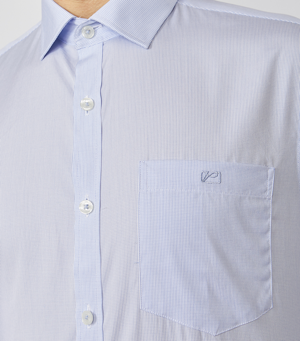 (V) MÔ TẢ: Form Taylor, tai dài Form áo tiêu chuẩn với form áo rộng vừa phải, không ôm sát cơ thể, bó nhẹ ở vùng eo và tay áo. Độ rộng vùng ngực và nách cũng sẽ fit hơn với cơ thể. Không quá rộng như form áo cổ điển. Màu vải nhã nhặn và trung tính dễ dàng phối trang phục tạo sự lịch lãm, nam tính Nút ton-sur-ton khắc logo đẹp mắt phối trọn vẹn màu áo. Logo thêu sắc nét trên túi áo. Chất liệu:50%POLYESTER- 24%COTTON-2%SPANDEX- 24%VISCOSE(BAMBOO) |Mềm mịn|Thấm hút |Kháng khuẩn|Độ thoáng khí cao|Chống tia UV|Chống nhăn|Chống co rút |Nhanh khô|Dễ vệ sinh làm sạch|Đứng phom áo Màu sắc : Màu Xanh họa tiết