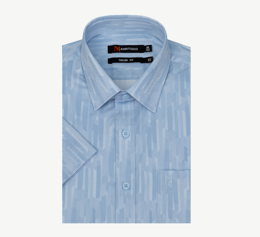 Áo sơ mi nam tay ngắn lai ngang – Khatoco - Mã hàng: A1MN538T2 - Chất liệu: 75% Polyester + 22% Viscose (Bamboo) + 3% Spandex → Vải mềm mại, thoáng mát, co giãn nhẹ,