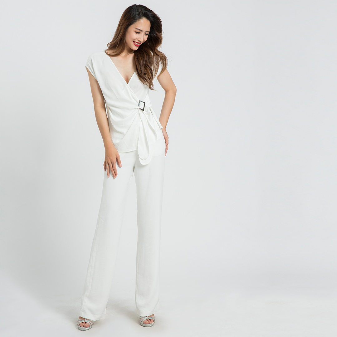 Vẻ đẹp cổ điển nhưng không lỗi thời trong chiếc áo thiết kế các chi tiết hiện đại kết hợp cùng chiếc quần ống suông trang nhã khiến quý cô trông đầy mộng mơ và thật sang.