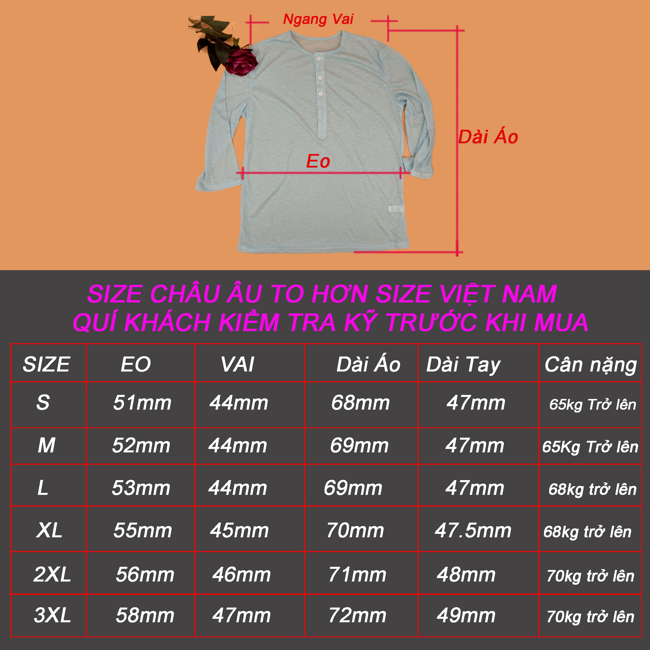 Mua tại TiktokÁo thun dài tay Nam phong cách châu âu Áo thun chất thoáng mát, vải mỏng Phù hợp cho mùa hè, cập nhật xu hướng thời trang, mẫu mới nhất Thích hợp cho : Áo phù hợp với mùa nắng nóng Chất liệu: Thun Cotton co giãn Quí khách lưu ý : do size của châu âu khác size Việt Nam, quí khách xem kỹ bảng size và lấy thước đo eo của mình, để lấy áo phù hợp Chất vải thun co giản, mỏng và mát phù hợp cho mùa hè oi bức Chất vải thun co giản, mỏng và mát phù hợp cho mùa hè oi bức Chất vải thun co giản, mỏng và mát phù hợp cho mùa hè oi bức