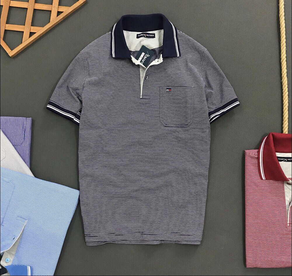 Áo thun nam trung niên sọc ngang có túi có cổ mã TL