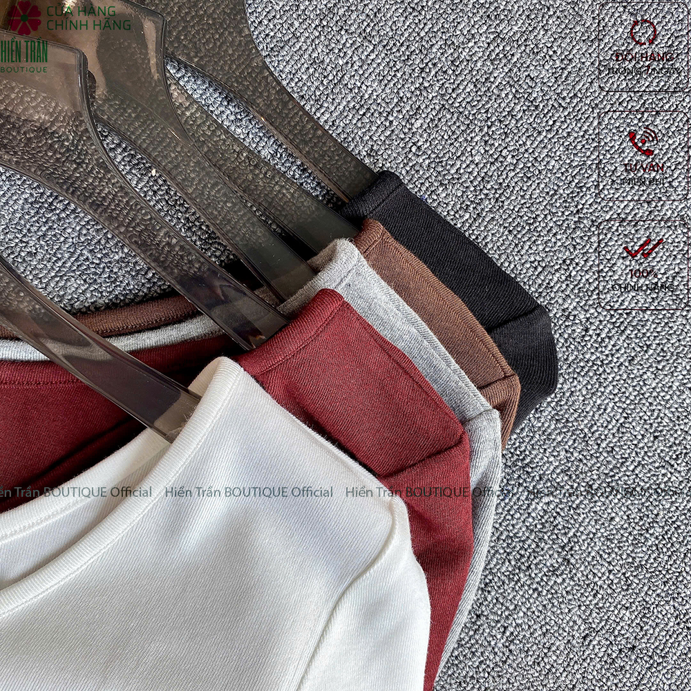 ✨Áo thun nữ cổ tim Hiền Trần BOUTIQUE dài tay dáng lỡ crop mặc thu đông chất cotton co giãn Top Women A9