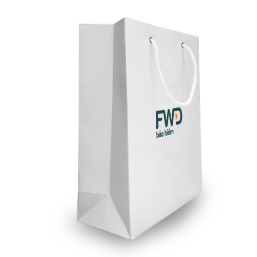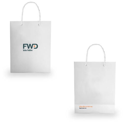 Mua tại TiktokTÚI GIẤY TRẮNG (FWD-52) được sản xuất bằng giấy Ivory dày, cứng vừa bền chắc vừa tạo được sự sang trọng cho túi. Túi có thiết kế đơn giản mà tinh tế, kết hợp cùng dây poly trắng mang tính thẩm mỹ cao tiện dụng cho cầm, xách. Với logo FWD màu xanh đặc trưng được in trên nền trắng, giúp người dùng luôn nhắc nhớ đến thương hiệu của bạn. Rất phù hợp đựng quà tặng cho Nhân Viên, Đối tác, Khách hàng hoặc đựng vật dụng trong cuộc sống hằng ngày.