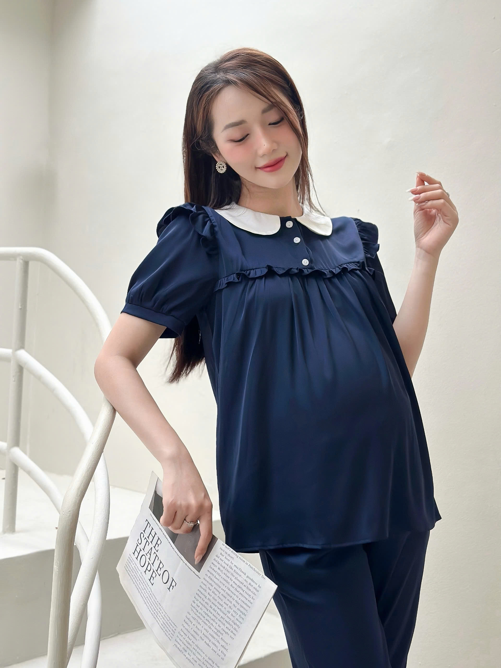 Azuno - Bộ Đồ Bầu Mặc Nhà Lửng Cao Cấp B245 Chất Liệu Satink Mặc Hè Siêu Mát - Bộ bầu được thiết kế phom chuẩn phù hợp cho mẹ bầu suốt 9 tháng thai