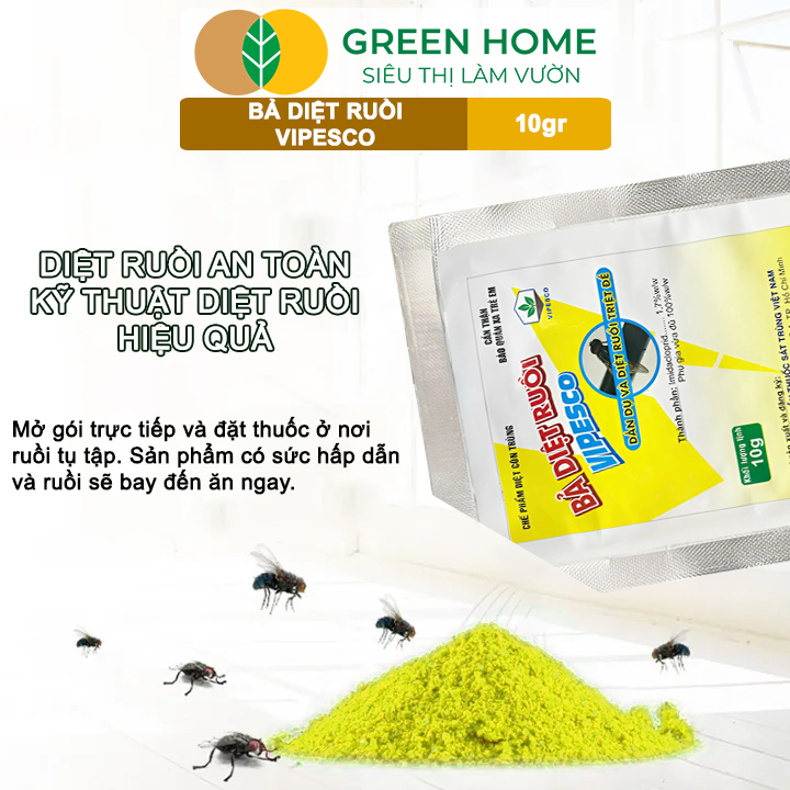 ✨Bả Diệt Ruồi Vipesco, GreenHome, Gói 10gr, Chính Hãng, Hiệu Quả Cực Nhanh, Dẫn Dụ và Diệt Ruồi Triệt Để