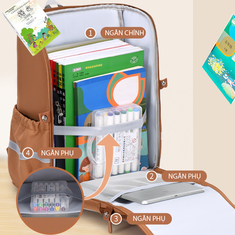 Thông tin sản phẩm: Balo học sinh Cấp 1 siêu nhẹ, chống gù, chống thấm nước, cặp sách học sinh - Chất liệu: Vải polyester chống co giãn, chống nhăn tốt - Sản