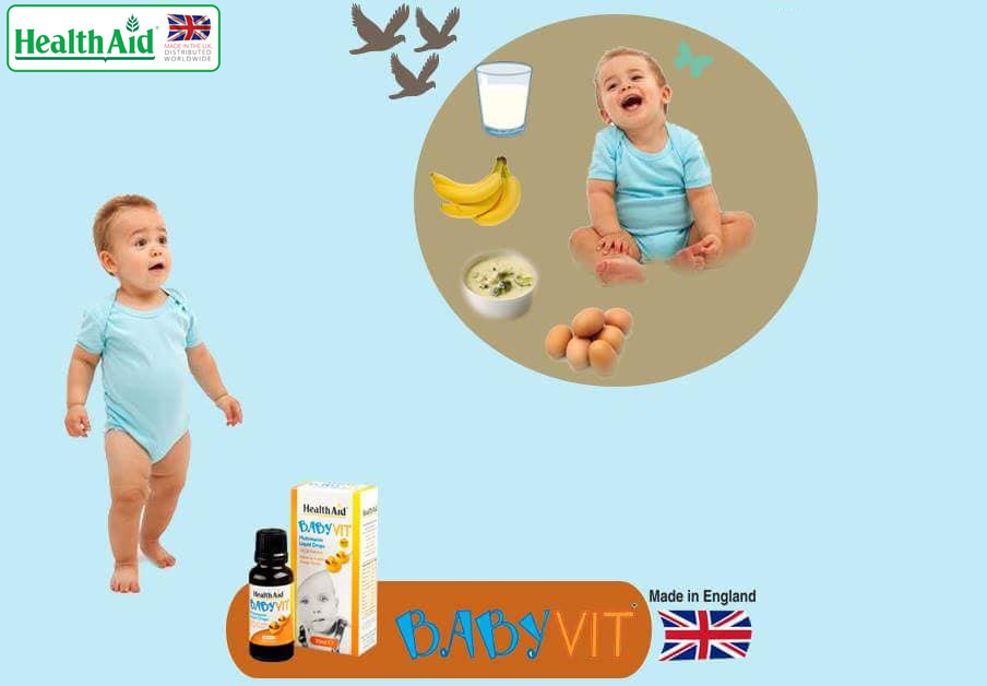 TẦM QUAN TRỌNG CỦA BABY VIT DROP ĐẾN TỪ ANH QUỐC Trẻ sơ sinh rất cần được hỗ trợ bởi vì mới thay đổi về môi trường sống và chế độ dinh dưỡng, đặc biệt là các bé mới sinh bị thiếu tháng, thiếu cân nặNg, cũng như tình trạng ăn uống kém….  Biểu hiện của việc trẻ thiếu vi chất là tình trạng quấy khóc ban đêm, rụng tóc vành khăn… Babyvit Drops từ HealthAid được chế tạo đặc biệt để cung cấp nhiều loại vitamin giúp bảo vệ chế độ ăn cho trẻ sơ sinh. Trẻ sơ sinh đang phát triển cần tất cả sự giúp đỡ để chúng có thể phát triển mạnh mẽ và khỏe mạnh. Dinh dưỡng hợp lý và chế độ ăn uống cân bằng là rất quan trọng cho sự phát triển của trẻ HealthAid Babyvit Drops có ích cho: Cung cấp vitamin và khoáng chất cần thiết hỗ trợ tăng cường sức đề kháng cho trẻ  Trẻ sơ sinh và trẻ nhỏ không có đủ chất dinh dưỡng từ chế độ ăn uống của họ do thói quen ăn uống kém, bổ sung vi chất, kích thích ăn ngon  Trẻ sơ sinh và trẻ nhỏ thiếu năng lượng do chế độ ngủ kém và tâm trạng thấp, quấy khóc ban đêm  Trẻ sơ sinh và trẻ nhỏ đang dùng thuốc hoặc những người khỏi bệnh, tăng cường sức đề kháng  Trẻ sơ sinh và trẻ nhỏ cần giúp đỡ kích thích tinh thần và sự tập trung, phát triển trí tuệ THÀNH PHẦN: Mỗi ml HealthAid  Babyvit Drops chứa (trung bình): % NRV Vitamin A (1000iu) 300 38 Vitamin D (400iu) 10 200 Vitamin E (7iu) 5mg 42 Vitamin C 50mg 63 Thiamine (Vit B1) 1,07mg 97 Riboflavin (Vit B2) 0,4mg 29 Niacin 8mg 50 Vitamin B6 0,4mg 29 Axít folic 55 28 Vitamin B12 2 80 Glyxerin 700mg
