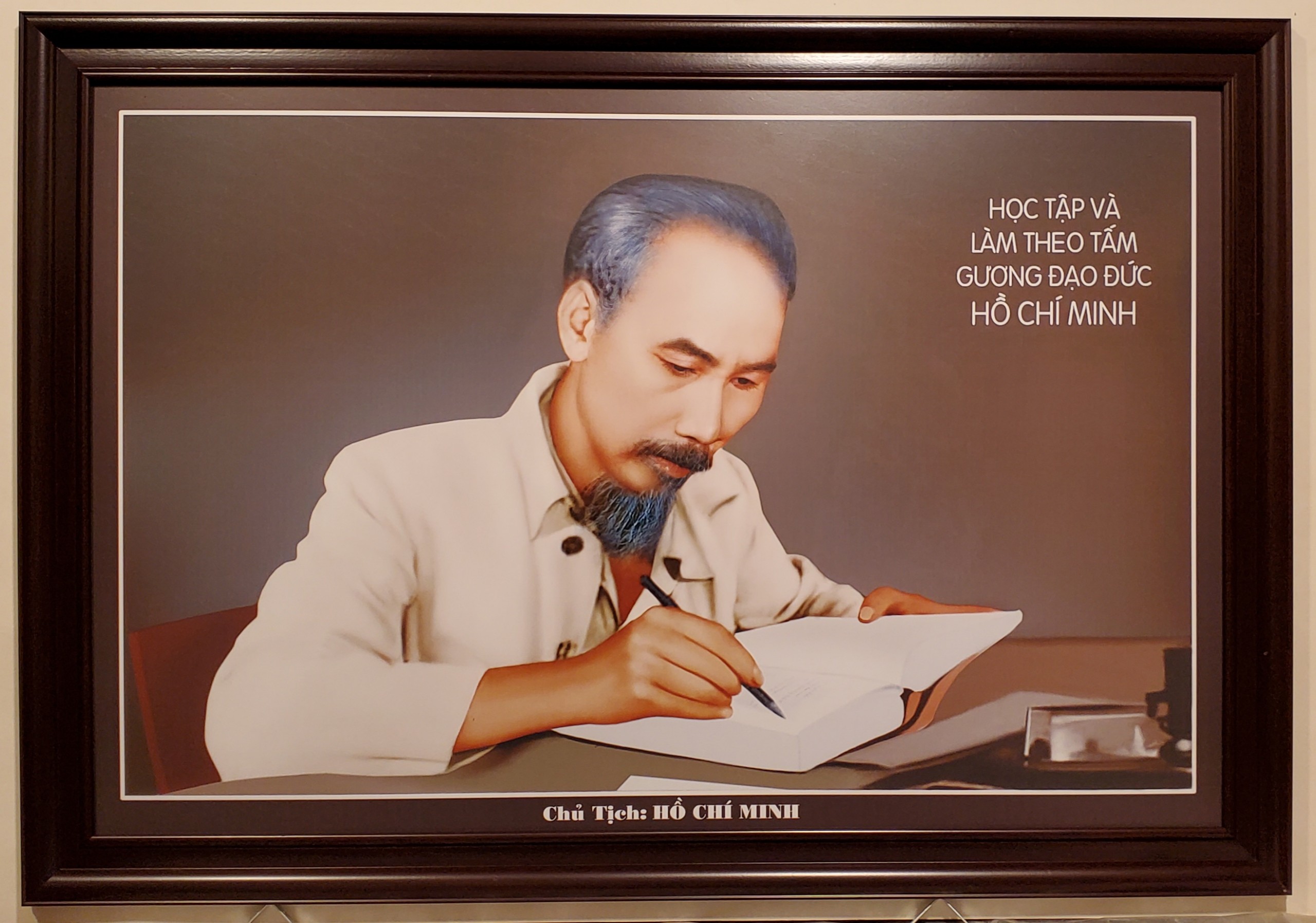xưởng in tranh ảnh bác hồ ngồi làm việc, ảnh gỗ gương 60x90
