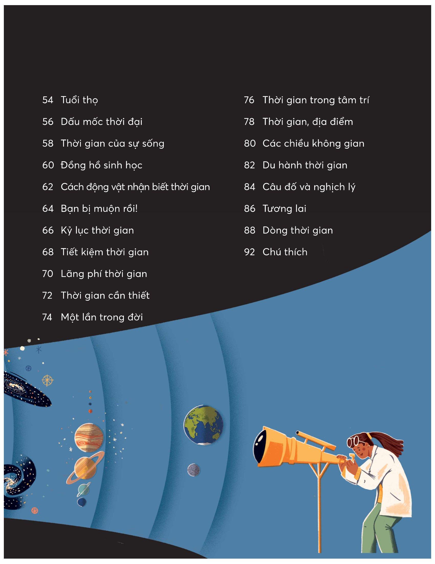 Chúng ta cùng theo dòng lịch sử để khám phá thời gian trong cuốn sách này, với những tiến bộ trong việc đo lường thời gian giúp thay đổi thế giới. Cuốn sách cũng giúp ta làm quen với những người có thói quen tiết kiệm và thích khám phá về thời gian.