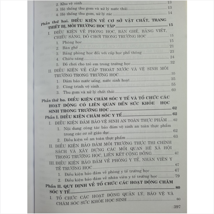 Phần thứ ba: Điều kiện chăm sóc y tế và tổ chức các hoạt động có liên quan đến sức khỏe học sinh trong trường học;