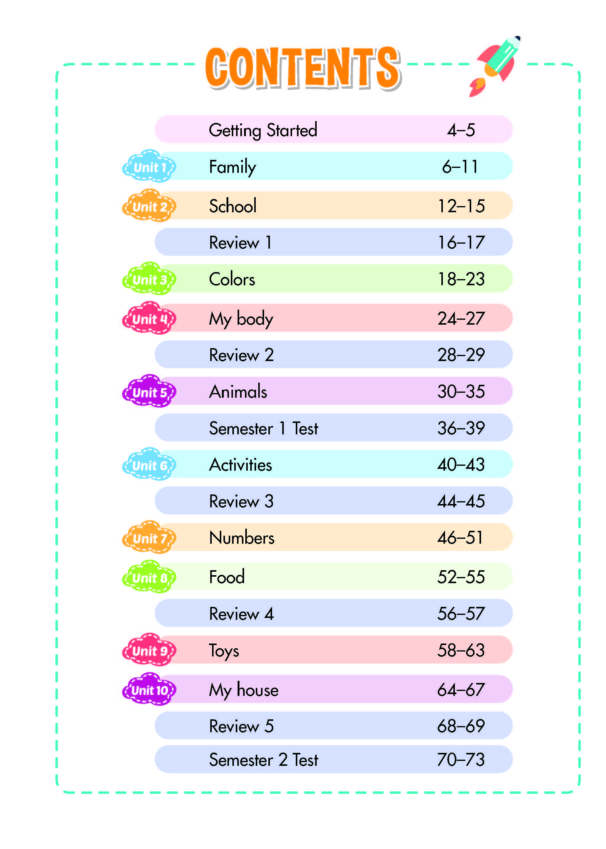 Sách Learning English 4 và 5, tiếng anh lớp 4 và 5 - Á Châu Books ( 10 - 12 tuổi ) NỘI DUNG VÀ CẤU TRÚC CỦA QUYỂN SÁCH : - Bảng mục lục: