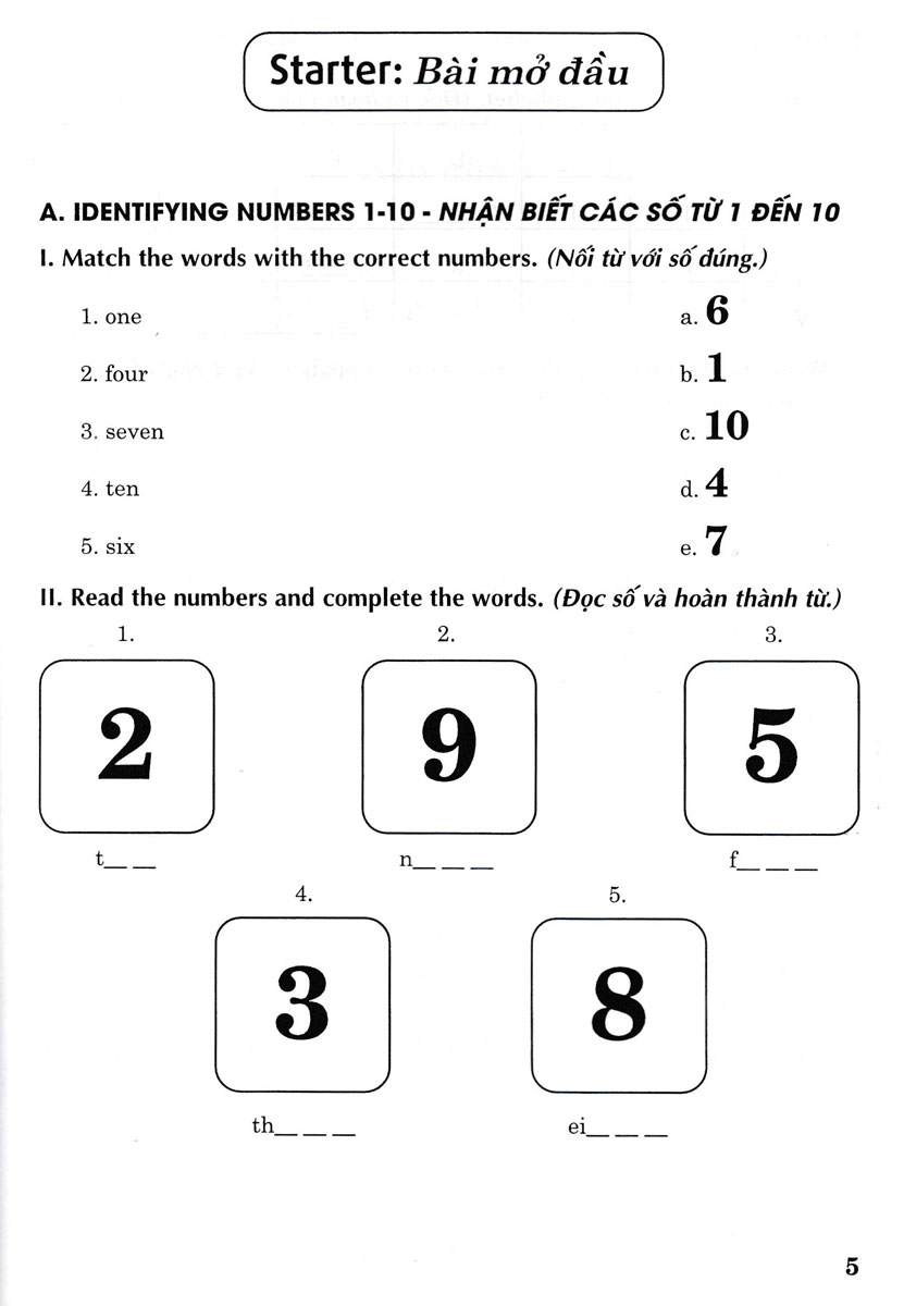 A. Phonics and Vocabulary: Các dạng bài tập trong phần này giúp các em làm quen với cách phát âm và ghi nhớ các từ vựng mới