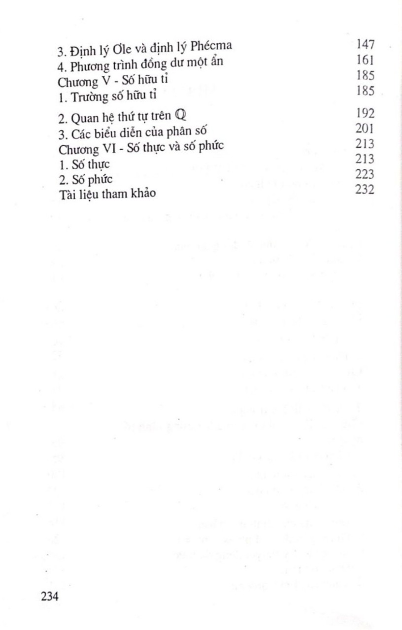 Những năm gần đây món Số học được giảng dạy cho sinh viên Cao đẳng sư phạm theo giáo trình ” Số học " của Nguyễn Tiến Tài – Nguyễn Hữu Hoan và cho sinh viên Đại học sư phạm theo giáo trình " Đại số và số học ” của Ngô Thúc Lanh ( tập I , tập II ) . Cuốn sách này được biên soạn dựa trên hai giáo trình đã nêu , có tham khảo thêm ” Giáo trình số học ” của Lại Đức Thịnh . Để thuận tiện cho việc học tập của sinh viên , chúng tôi viết phần tóm tắt lý thuyết và lấy các đề toán chủ yếu dựa trên cuốn " Số học ” của Nguyễn Tiến Tài – Nguyễn Hữu Hoan . Tuy nhiên chúng tôi có bỏ bớt một số bài toán đơn giản , đơn thuần áp dụng kiến thức cơ bản , hoặc có nội dung trùng lặp và thêm vào một loạt bài khó hơn mang tính lý thuyết hoặc đòi hỏi suy luận sáng tạo khi giải . Riêng với chương VI chúng tôi nếu cả hai cách xây dựng trường số thực theo hai giáo trình nói trên và chọn các bài tập tương ứng với cả hai cách trình bày đó . Về ký hiệu , để đơn giản trong cách trình bày chúng tôi chọn cách ký hiệu ( a , đụ , a , ) để chỉ ước chung lớn nhất , thay cho UCLN ( a !, âm a , ) và ký hiệu [ a , â , … , an ] để chỉ bội chung nhỏ nhất thay cho BCNN ( a !, Ô , … , 2 , a ) . ****