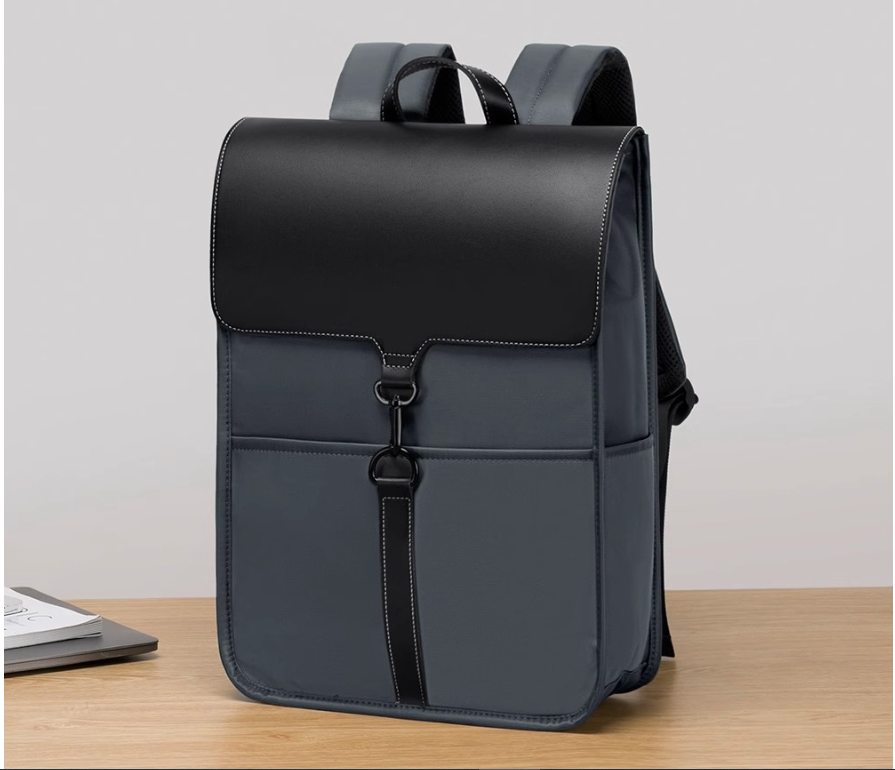 Chiếc Balo laptop nam nữ 15”, ba lô đi làm, đi học đựng máy tính 15inch ngăn trước khoá gài với thiết kế dáng đứng cùng chi tiết ngăn trước khoá gài phối da vân tạo