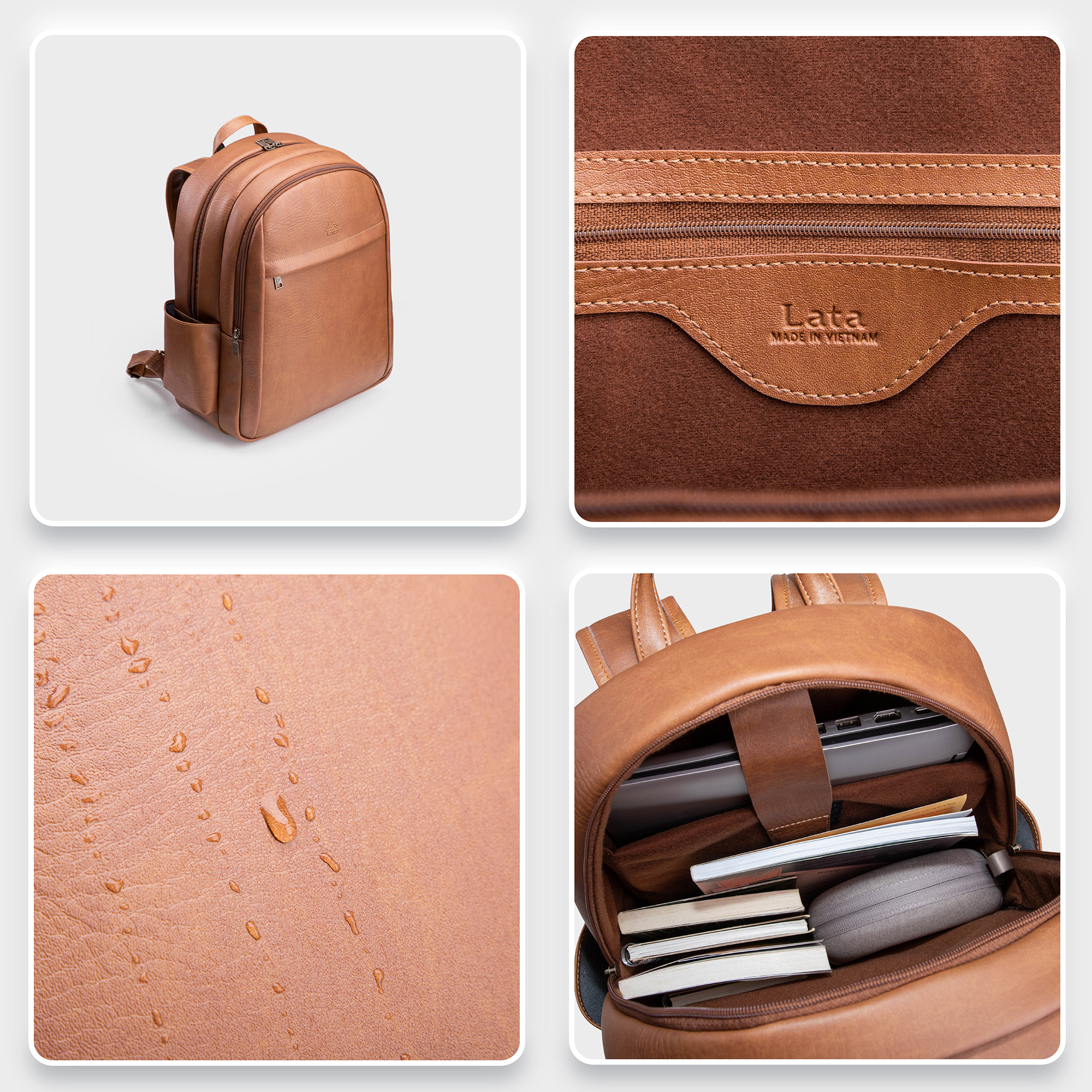 Kích thước : rộng 30cm X cao 39cm X dày 10.5cm Trọng lượng: 1.1 kg Dung tích: laptop 14 inch Màu sắc: Nâu, Đen Phương pháp sản xuất: thủ công Chất liệu : Da BÒ