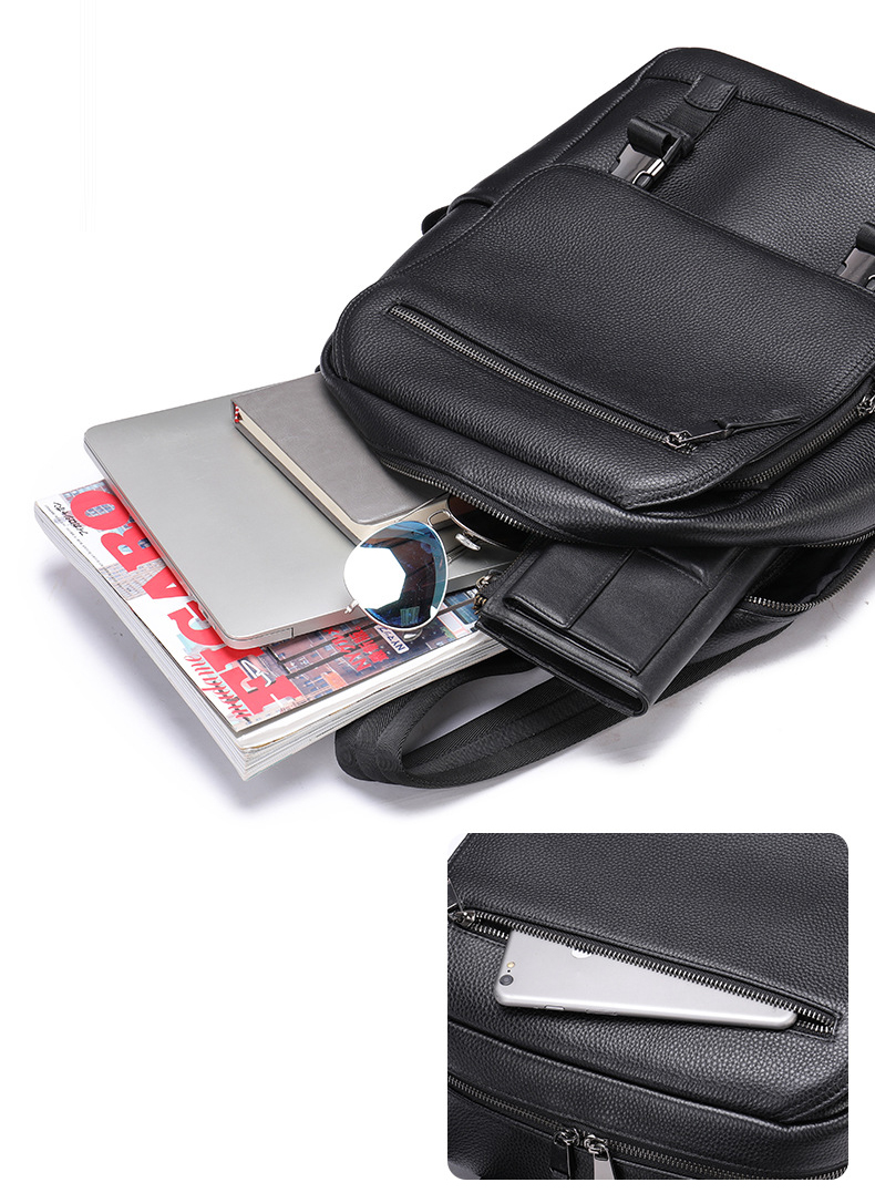 Kích thước : rộng 29cm X cao 41cm X dày 12cm Phương pháp sản xuất: thủ công Chất liệu :Da bò thật 100% Trọng lượng: 1.32kg Màu: Đen Chức năng: thoáng khí, chống mài mòn,