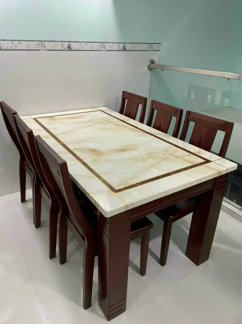Bộ bàn bao gồm 6 ghế + 1 bàn mặt đá