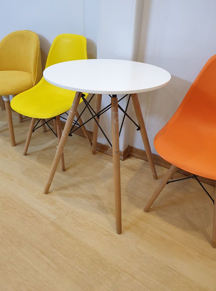 Kích thước : 75x60x75 Chất liệu : chân gỗ cao su, mặt ván mdf Phù hợp cho : Quán cafe, trà sữa, nhà ở… Màu sắc : trắng, đen…