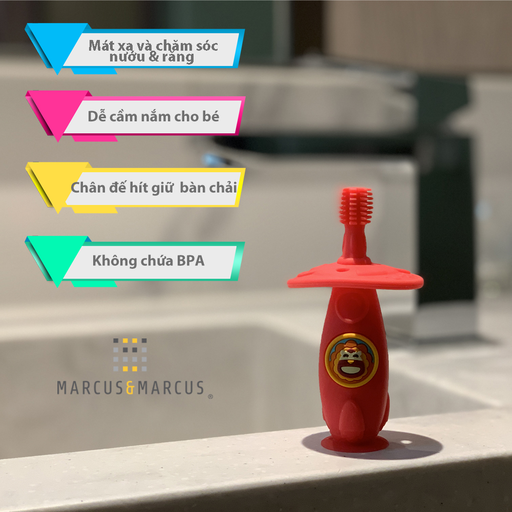 Bàn chải đánh răng kiêm gặm nướu silicon Marcus & Marcus, giữ sạch răng lại hết ngứa nướu