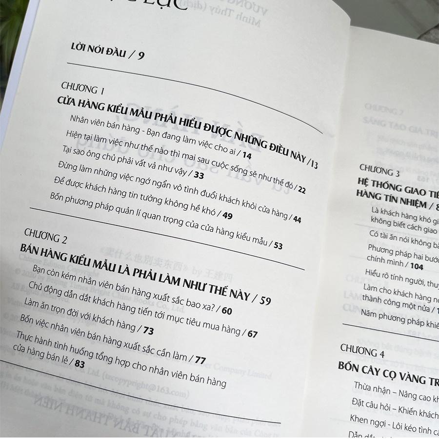 Cuốn sách này là một công thức thực tế được các ông chủ cửa hàng bán lẻ, quản lí cửa hàng và nhân viên tư vấn bán hàng đề xuất. Đây có thể coi là một hướng dẫn làm việc toàn diện cho các doanh nghiệp có thương hiệu để tặng cho các đối tác nhượng quyền, chủ cửa hàng và nhân viên. Doanh thu của cửa hàng ngày càng cao nhưng lợi nhuận lại ngày càng thấp, thành tích bán hàng không có đột phá lớn, cửa hàng vận hành khó khăn, vị trí tốt, trang trí đẹp nhưng khách hàng vẫn không ghé cửa hàng, ban đầu trò chuyện rất thuận lợi nhưng cứ nhắc đến chốt đơn là khách hàng bỏ đi, khách hàng thích sản phẩm nhưng ra sức mặc cả đọc xong cuốn sách này, những vấn đề đau đầu ấy đều có thể giải quyết dễ dàng.