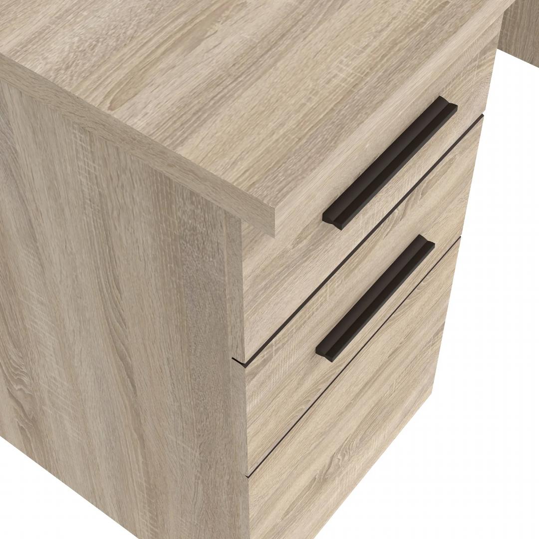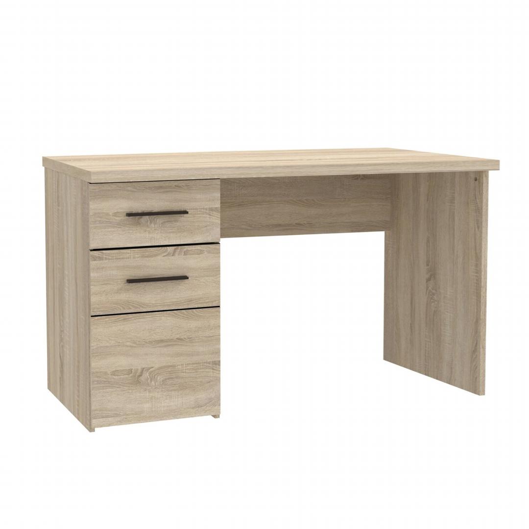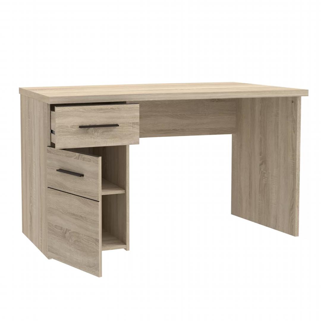 - Tên sản phẩm: Bàn làm việc kèm ngăn kéo và kệ để đồ - Chất liệu: Gỗ MDF phủ melamine cao cấp chống xước - chân bàn gỗ tự nhiên - Màu sắc: Vân gỗ sồi - Kích thước: 80/120 x 55 x 82cm (dài x rộng x cao) - Công năng: Là mẫu bàn làm việc, bàn học giúp tiết kiệm diện tích không gian phòng