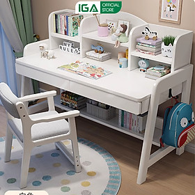 - Tên sản phẩm: Bàn học trẻ em thông minh kèm kệ sách thương hiệu IGA - KHÔNG KÈM GHẾ - Chất liệu: Mặt gỗ mdf phủ melamin chống xước chống nước, chân thép chống