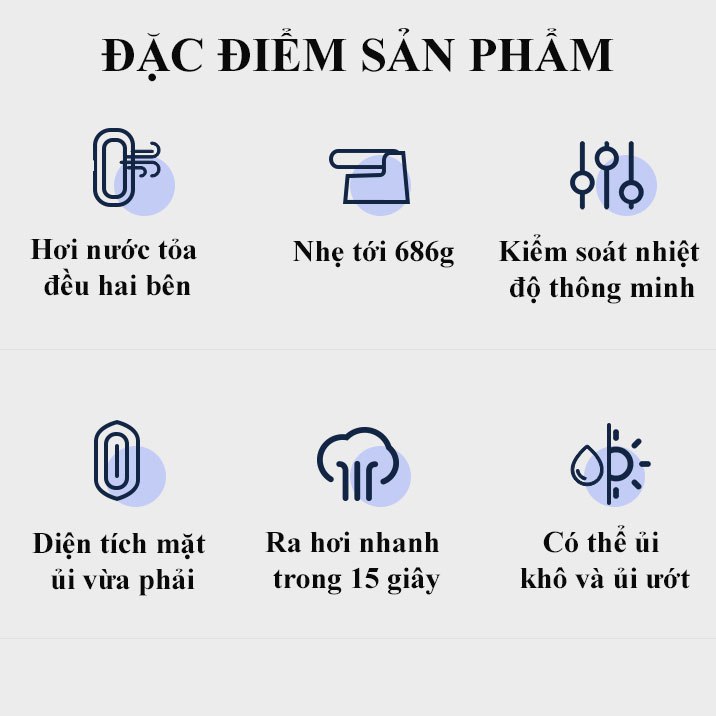 THÔNG SỐ KỸ THUẬT - Loại bàn ủi: Bàn là hơi nước - Công suất: 2000W - Bình nước: 220 ml - Mặt đế: Ceramic chống dính - Chức năng: Ủi khô Ủi hơi nước