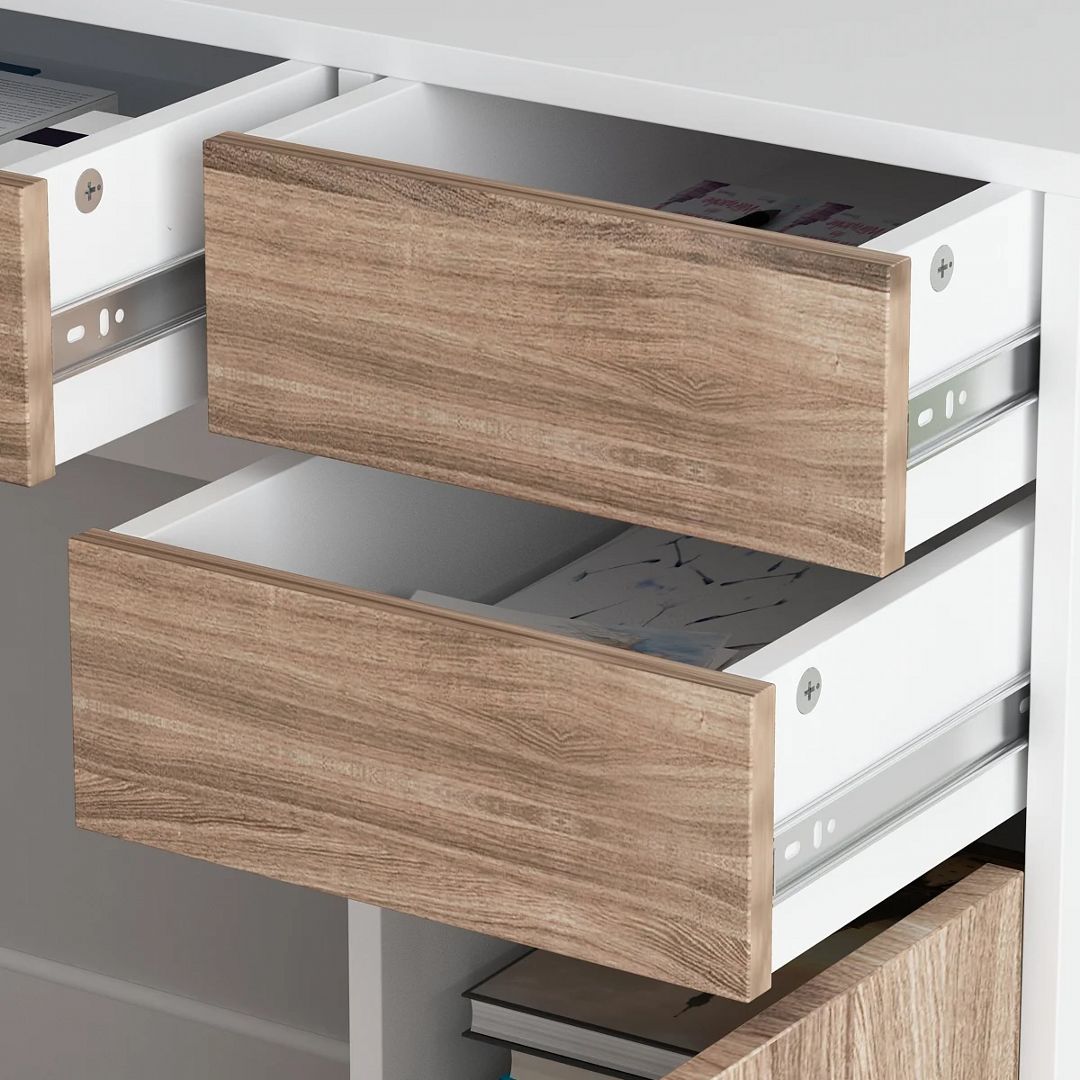- Tên sản phẩm: Bàn làm việc kèm tủ hồ sơ tiện lợi - Chất liệu: Mặt bàn gỗ mdf dày 30mm phủ melamin chống xước - Khung thép chống gỉ phủ sơn tĩnh điện - Màu sắc: Gỗ trắng - khung chân đen - Kích thước: Bàn 120x60x75cm - Tủ 60x40x69cm - Công năng: Là mẫu bàn làm việc có thiết kế hiện đại kèm tủ hồ sơ đa năng phù hợp tại nhà và cả văn phòng làm việc