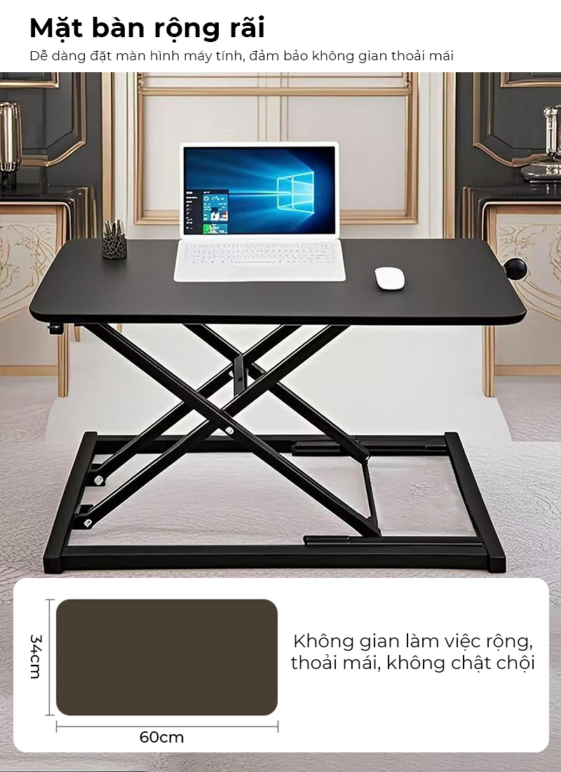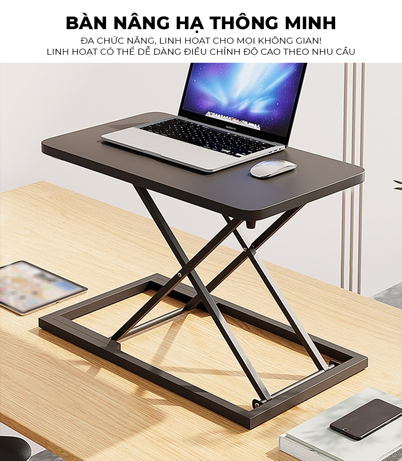 - Công năng: Mẫu bàn nâng hạ tiện lợi dùng trong văn phòng, những người cần thay đổi tư thế do làm việc 1 tư thế quá lâu,..