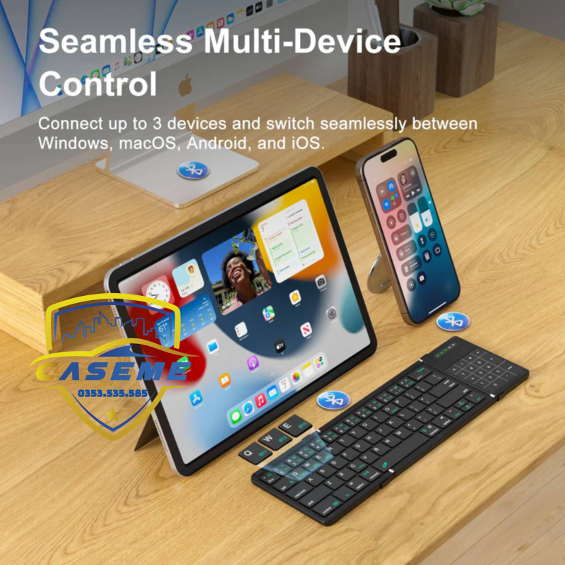 Bàn phím gấp gọn không dây có touchpad cử chỉ đa điểm cực mượt dùng cho ipad, máy tính bảng, laptop