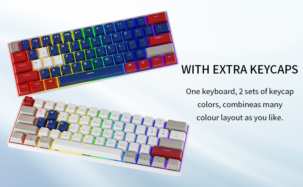 - Giao diện: USB - Số lượng phím: 98 phím - Màu keycaps: Alpha (White + Black) / Beta (Black + White) - Đèn nền: Rainbows - Switch: YH (Blue/Red/Brown) - Keycap: ABS - Antighosting: