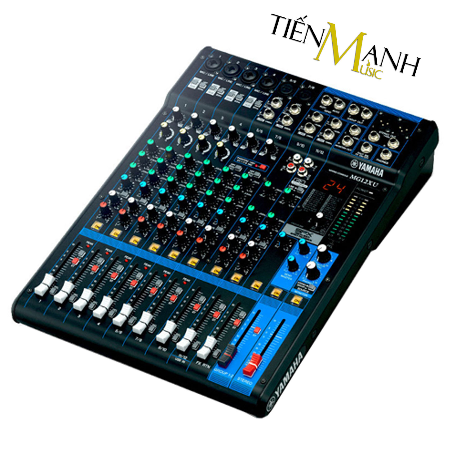 - 12 Kênh Mixing Console: tối đa 6 Mic/12 Line Input (4 mono + 4 stereo) / 2 nhóm Bus + 1 Stereo Bus / 2 AUX (bao gồm FX)