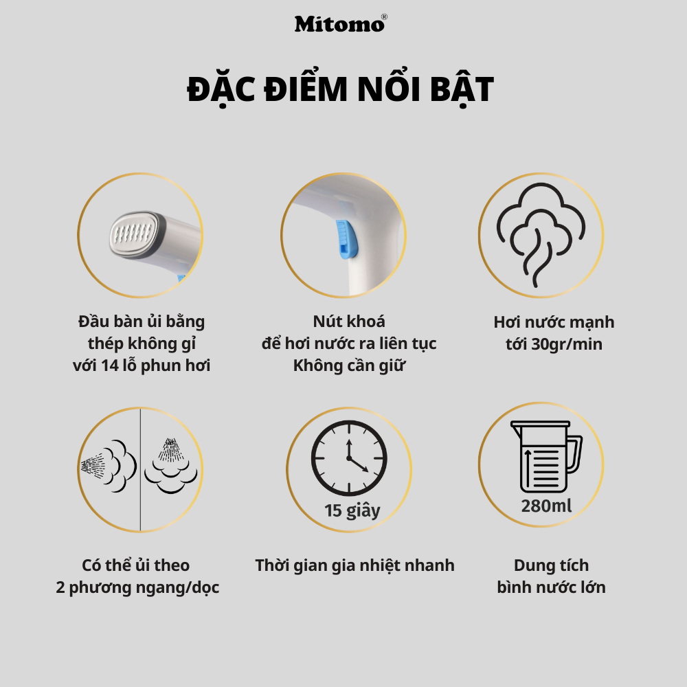 BÀN LÀ HƠI NƯỚC CẦM TAY MITOMO MW-801 - BẢO HÀNH CHÍNH HÃNG 2 NĂM