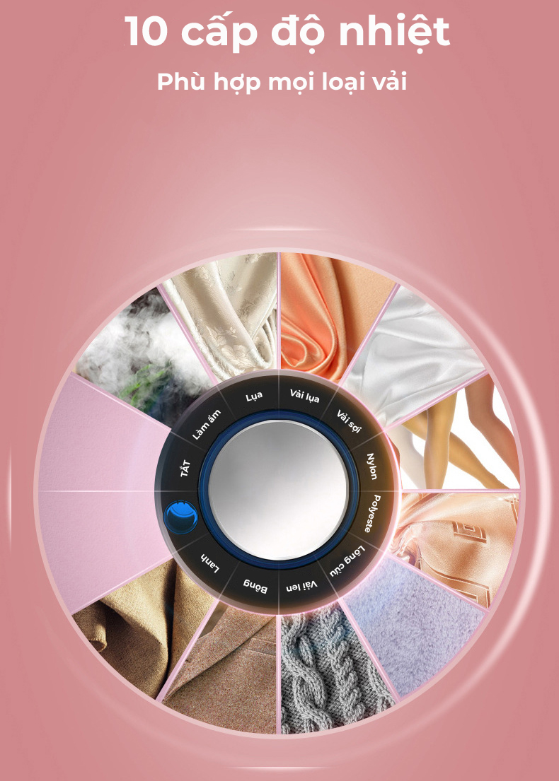 Bàn là 3 mức công suất: là được tất cả các loại vải từ tơ lụa tới vải dày như áo khoác dạ, cam kết không gây cháy Hơi nước được xả mạnh và liên