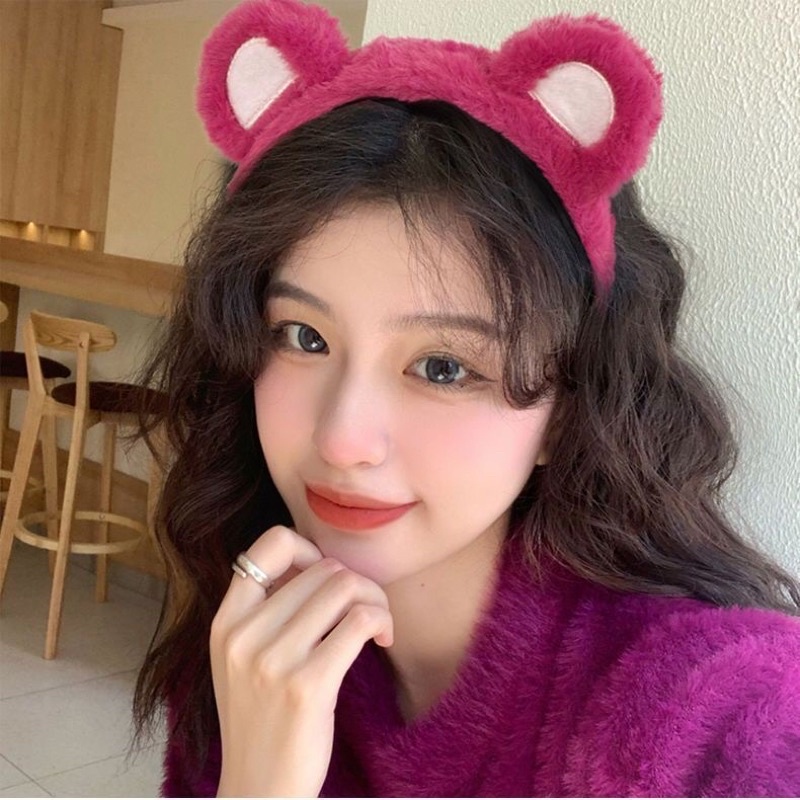 Băng đô rửa mặt bờm cài cố định tóc tai gấu vải nhung mềm mịn đơn giản dễ thương cho nữ
