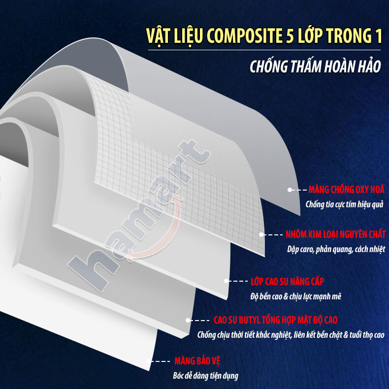 Mua tại TiktokBăng Keo Chống Thấm Nước chuyên dụng được cán một lớp keo cao su butyl đặc dày, tính liên kết cực cao, không thấm nước, khi đã dính không thể kéo trở lại trạng thái bình thường - Sản phẩm có khả năng cách nhiệt mạnh mẽ, chống mài mòn & trầy xước, giúp làm chậm quá trình phân rã lớp keo bên trong nhờ lớp màng ngoài dập vân caro được làm từ nhôm nguyên chất - Cho độ bền trên 10 năm kể cả trong điều kiện nắng gió tuyết & thời tiết khắc nghiệt bên ngoài.