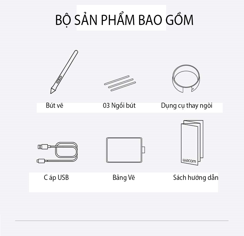 - Bút cảm ứng áp lực, không dây, không có pin. BỘ SẢN PHẨM BAO GỒM 01 Bảng vẽ CTL-472/K1-F 01 Bút vẽ 01 Cáp sạc 01 Cáp USB 03 Ngòi dự phòng 01 Sách hướng dẫn 01 Vòng tháo ngòi 01 Sách hướng dẫn