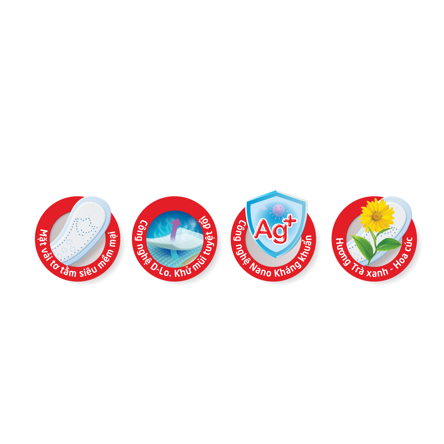 Băng vệ sinh không có bạc hà, tập trung vào các tính năng nổi trội là kháng khuẩn, khử mùi và bề mặt mềm êm.