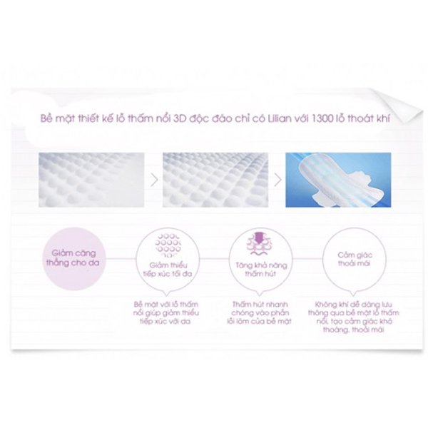 Với thiết kế đặc biệt dành riêng cho ban đêm như: rãnh chống tràn an toàn bề mặt mềm mịn (lưới lụa cao cấp giúp thấm hút nhanh chống thấm ngược nếp gấp 2 lần… tạo