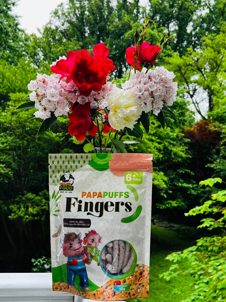 1. Tên sản phẩm: Bánh ăn dặm PAPAPUFFS FINGERS - 100% Nguyên Liệu Hữu cơ 2. Thành phần: Sản phẩm được sản xuất từ 100% Nguyên Liệu Hữu Cơ gồm gạo đen hữu cơ 97%,